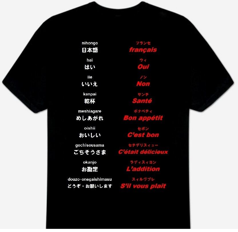 フランス語での食事の時の慣用句をモチーフにしたTシャツ。