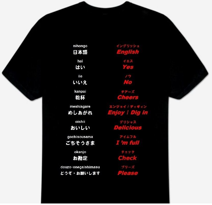 英語での食事の時の慣用句をモチーフにしたTシャツ。
