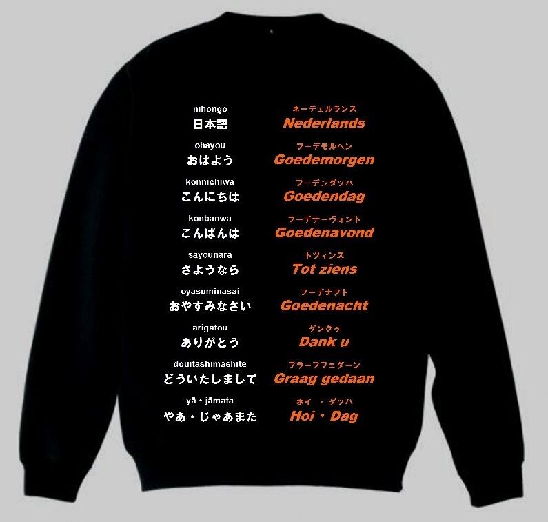 オランダ語でのあいさつをモチーフにしたトレーナー。