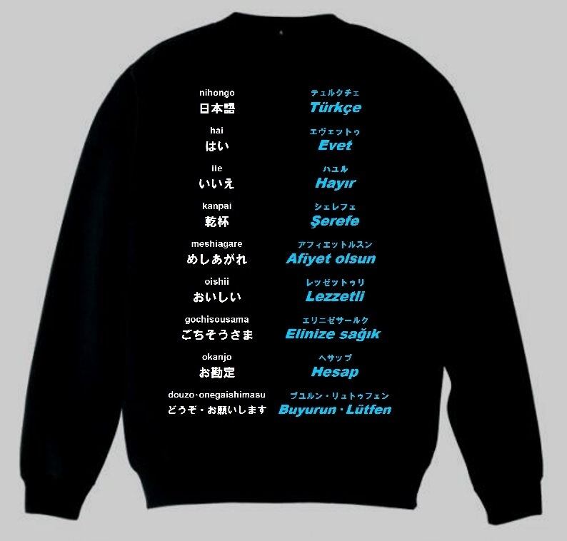 トルコ語での食事の時の慣用句をモチーフにしたトレーナー。